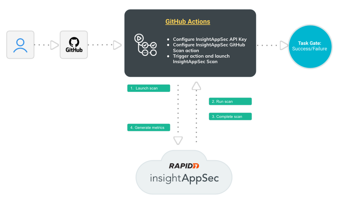A DevSecOps mindset is needed, with security baked into the SDLC — and now, GitHub Actions makes this easier than ever. This new integration — offered completely free to InsightAppSec customers — allows security and development teams to automate dynamic application security testing (DAST) as part of the CI/CD build pipeline workflow. For example, you can easily configure the integration to scan your team's work for vulnerabilities, and if high-severity vulnerabilities are found, you can have it notify and/or block risky code before it reaches production environments.