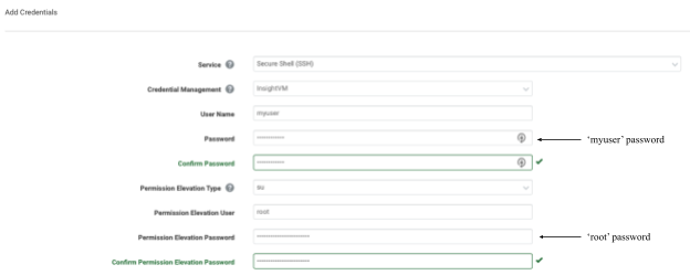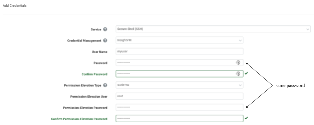 What this means in terms of configuring su elevation in the Security Console, is that the Permission Elevation Password on the “Add Credentials” page must be set to the password of the root user.