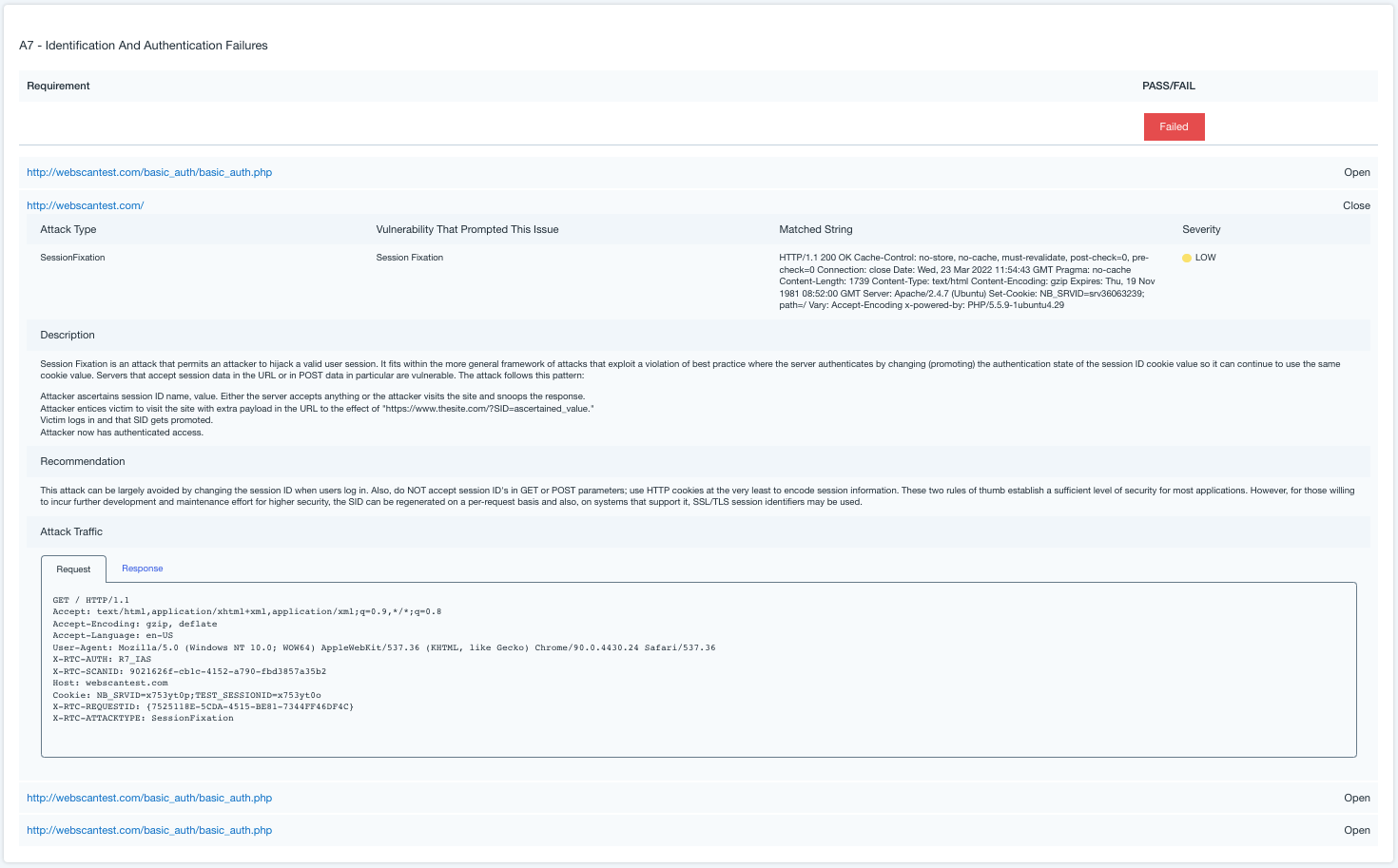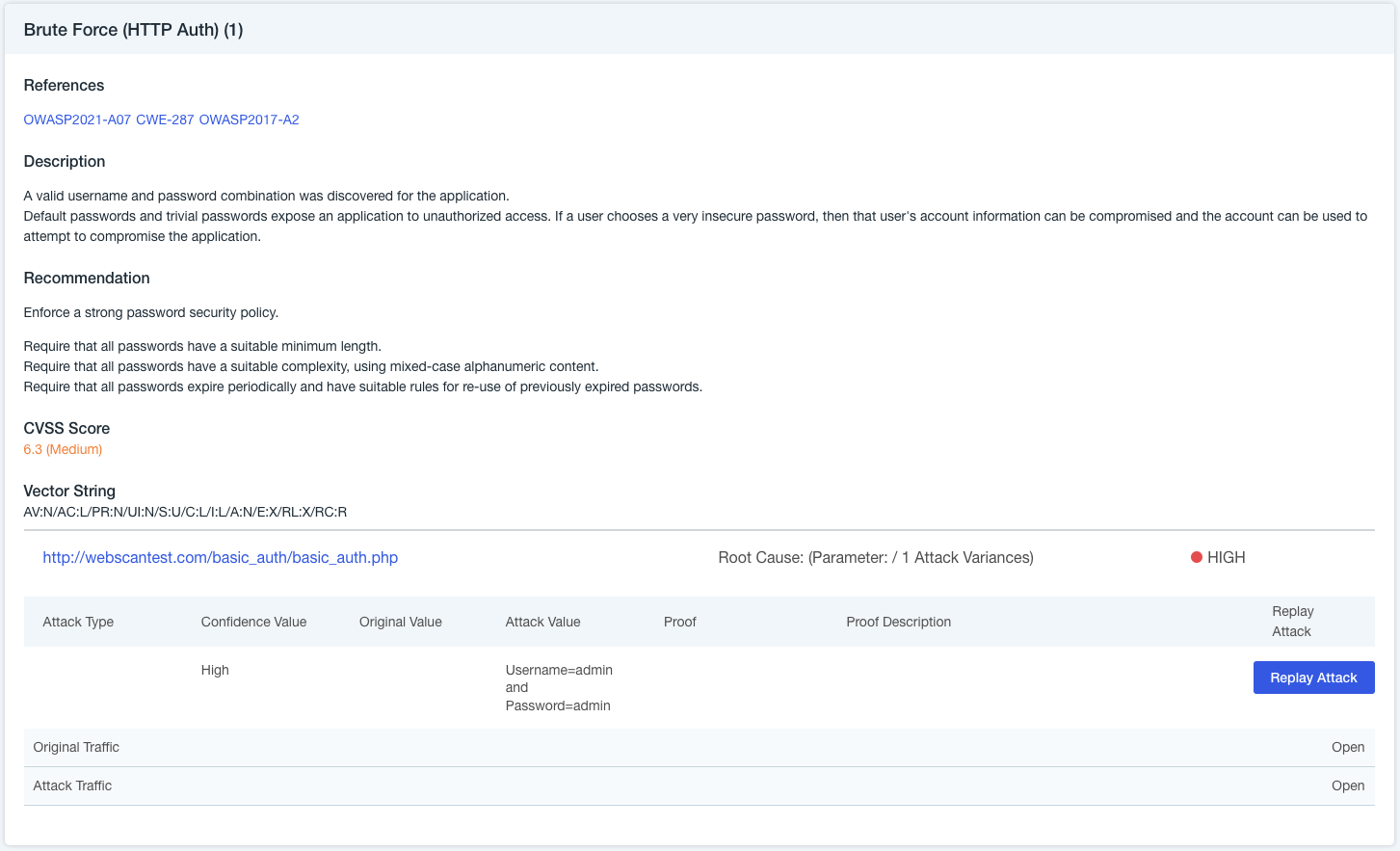 The remediation report includes the Attack Replay feature found in the product that allows developers to quickly and easily validate the vulnerabilities by replaying the traffic used to identify them.