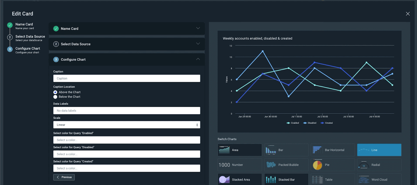Analysts can also leverage this pre-built content as a springboard for customizing their own reports. InsightIDR provides multiple query modes and methods for creating data visualizations — so whether you are more comfortable with loose keyword search, working in our intuitive query language, or simply clicking on charts to narrow down results — every analyst can operate as an expert, regardless of their prior SIEM experience.