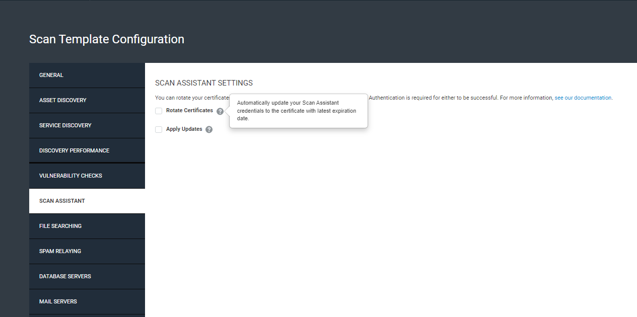 Currently, these enhancements are only available on Windows OS. To opt into automated Scan Assistant software updates and/or digital certificate rotation, please visit the Scan Assistant tab in the Scan Template.