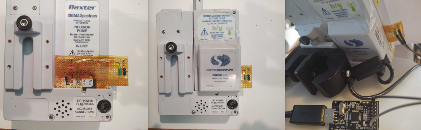 An attacker with physical access to an infusion pump could install a Wi-Fi battery unit (easily purchased on eBay), and then quickly power-cycle the infusion pump and remove the Wi-Fi battery – allowing them to walk away with critical Wi-Fi data once a unit has been disassembled and reverse-engineered.