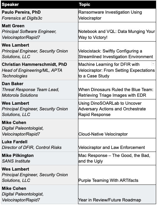 Have you ever wanted to share your passion and interest in Velociraptor with the rest of the community? VeloCON is your chance! Come together with other DFIR experts and enthusiasts from around the world on September 15th as we delve into new ideas, workflows, and features that will take Velociraptor to the next level of endpoint management, detection, and response.