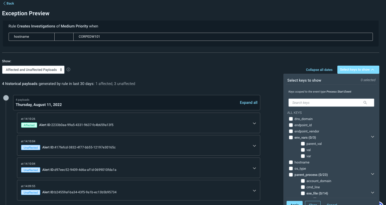 Preview the impact of exceptions on detection rules