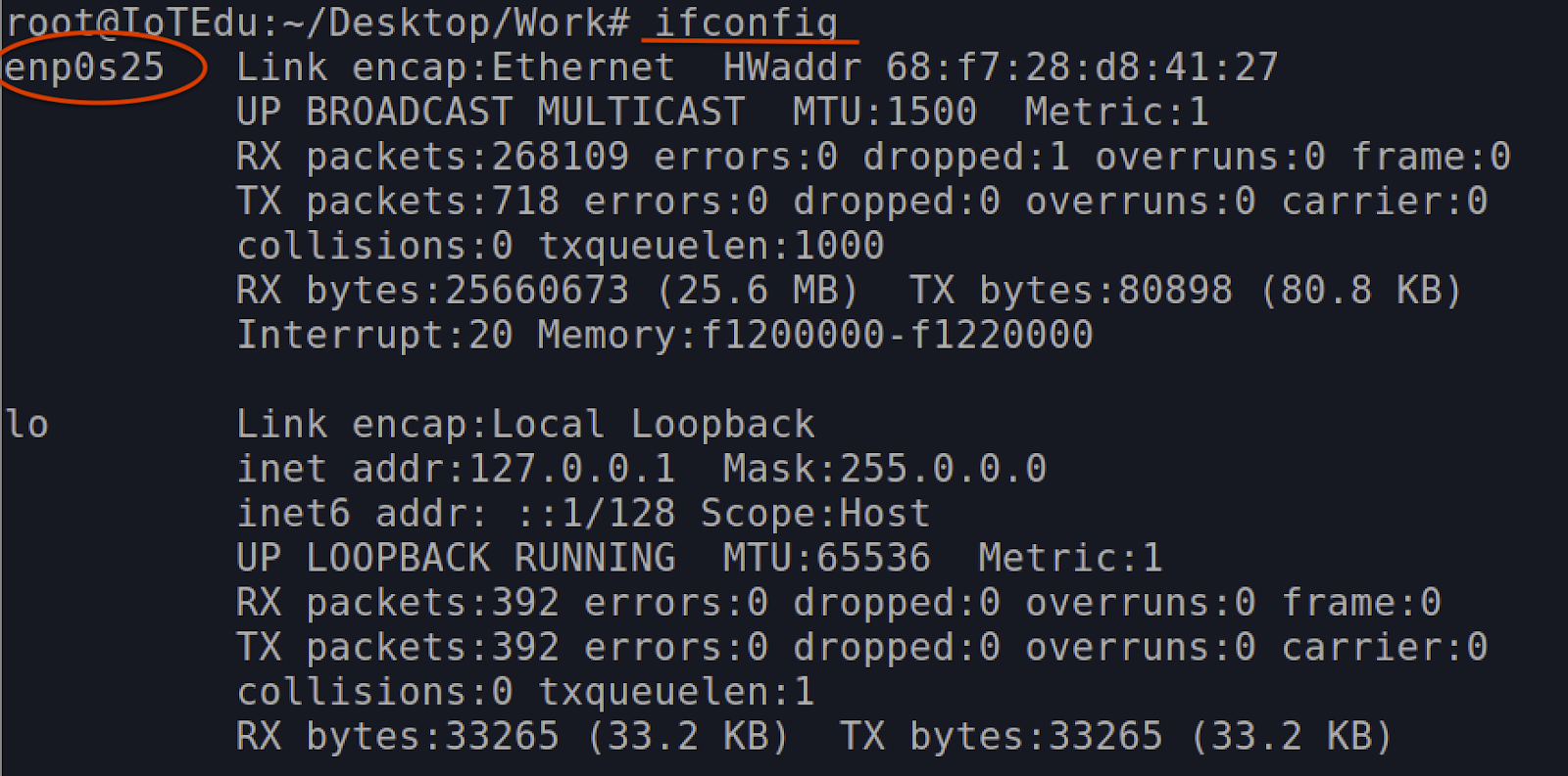 To set the local IP address on your host, the first thing is to identify the local ethernet interface. You can do this from the Linux CLE terminal by running the ifconfig command: