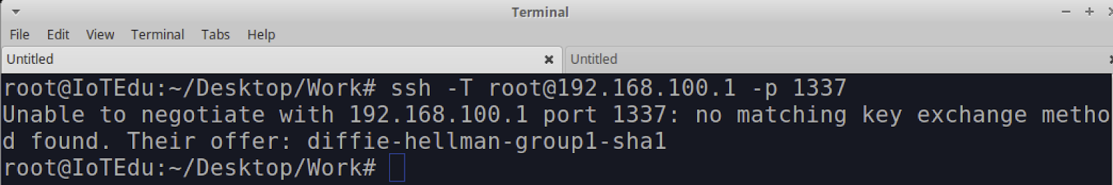 If you receive a “no matching key exchange method found" error (Figure 13), you will need to either define that Diffie-hellman-group-sha1 in the SSH command or create a config file to do this automatically.