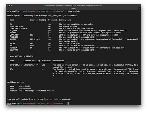 - auxiliary/gather/ldap_esc_vulnerable_cert_finder, which supports hunting for ESC1, ESC 2 and ESC 3 vulnerable certificates on the target AD CS server using LDAP