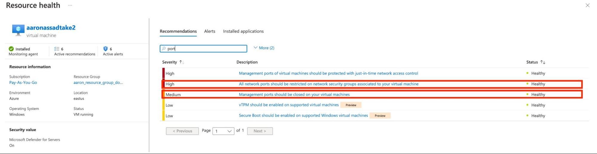 However, prior to March 9th, if the Network Security Group was instead configured such that a “management port” like RDP or SSH was exposed to “0.0.0.0/0,” as a source (which is the entire IPv4 range of all possible addresses) no security recommendation was created and the configuration was incorrectly marked as “Healthy.”