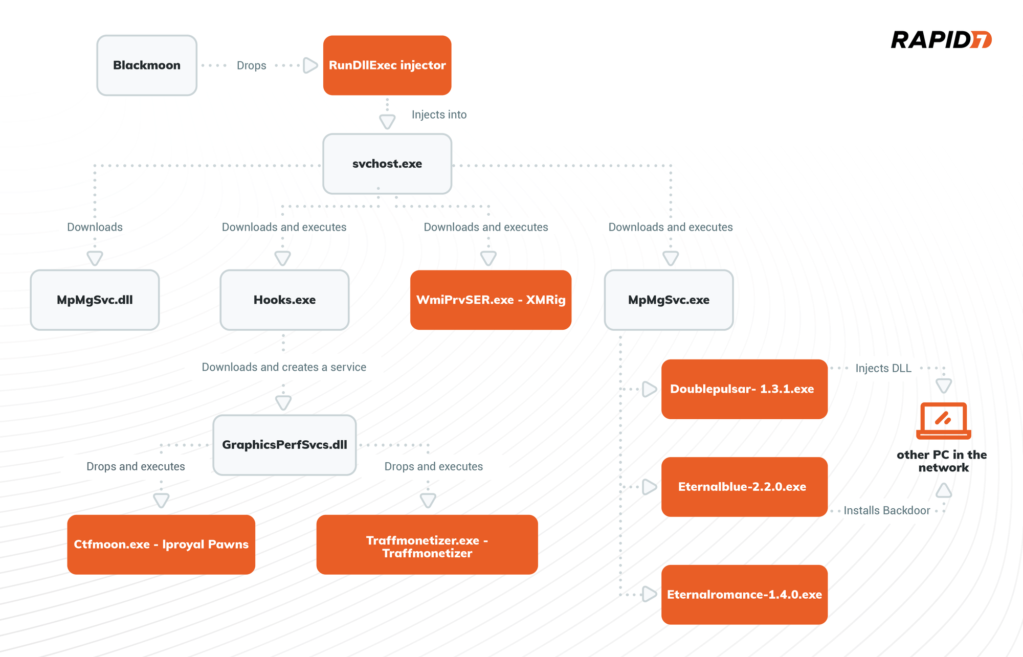 Rapid7 is tracking a new, more sophisticated and staged campaign using the Blackmoon trojan, which appears to have originated in November 2022. The campaign is actively targeting various businesses primarily in the USA and Canada. However, it is not used to steal credentials, instead, it implements different evasion and persistence techniques to drop several unwanted programs and stay in victims’ environment for as long as possible.