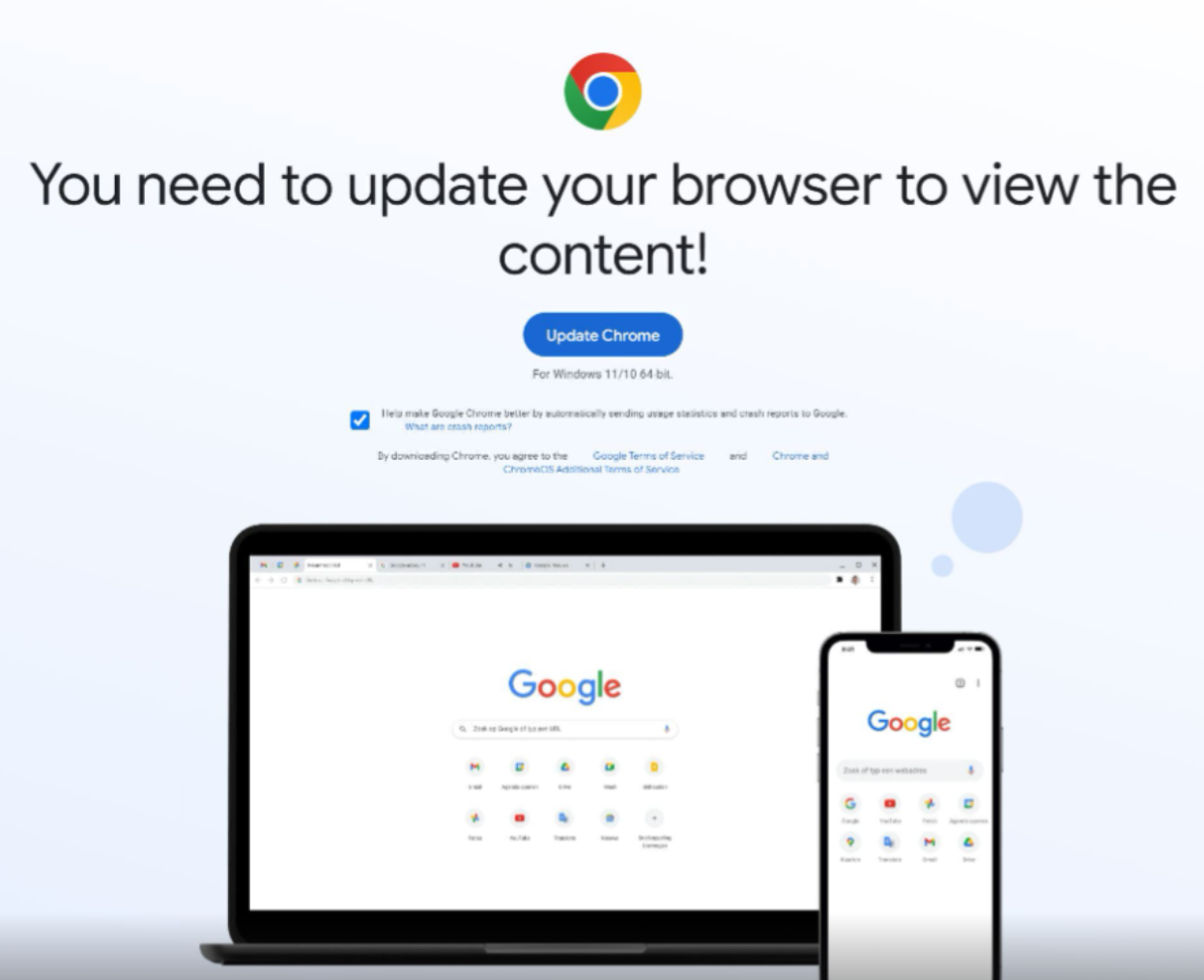 This prompt falsely presents itself as a browser update, with the added layer of credibility coming from the fact that it appears to originate from the intended domain.