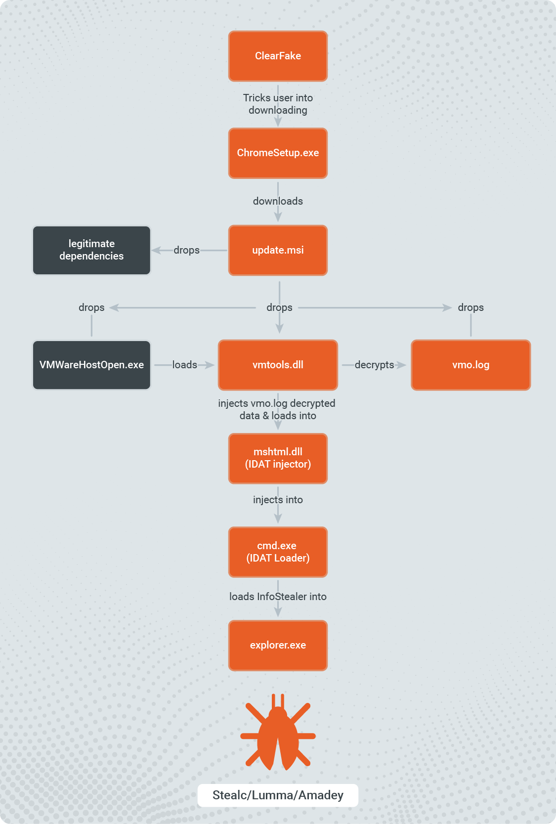 IDAT Loader is a new sophisticated loader that utilizes multiple evasion techniques in order to execute various commodity malware including InfoStealers and RAT’s. The Threat Actors behind the Fake Update campaign have been packaging the IDAT Loader into DLLs that are loaded by legitimate programs such as VMWarehost, Python and Windows Defender.