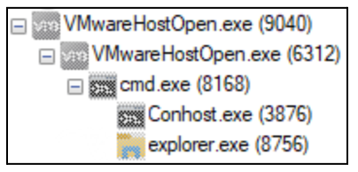 After completing the injection, the second instance of VMWareHostOpen.exe exits.