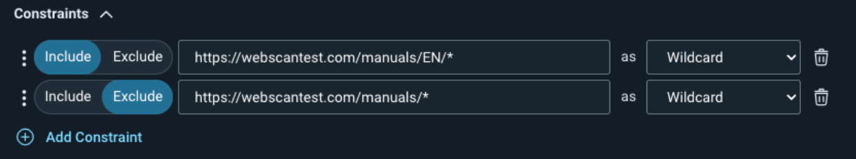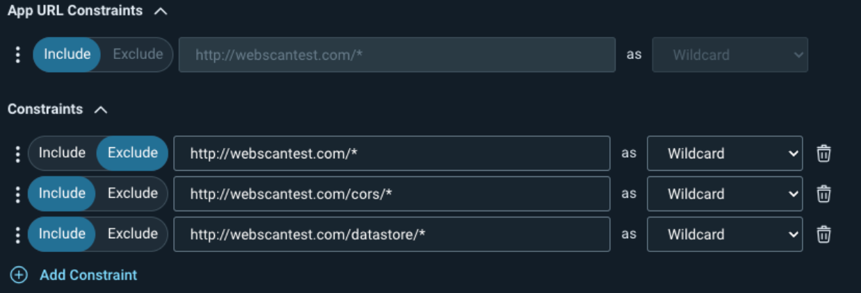 You can optionally add the constraints to the Attack Restrictions so the scan still crawls the target pages, but doesn’t attack them.