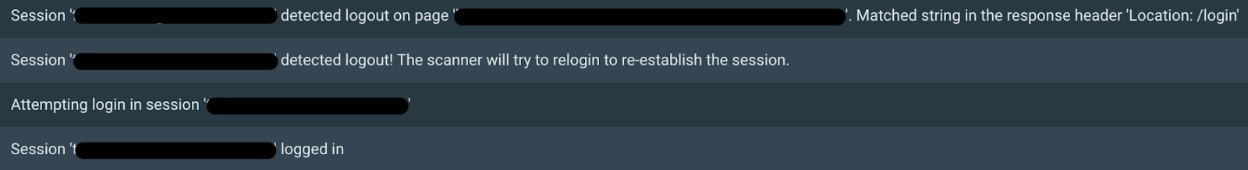 To fix this, we can adjust the Session Loss Regex or the Session Loss Header Regex depending on where the logs say the logout match was found, either in the response header or response body.