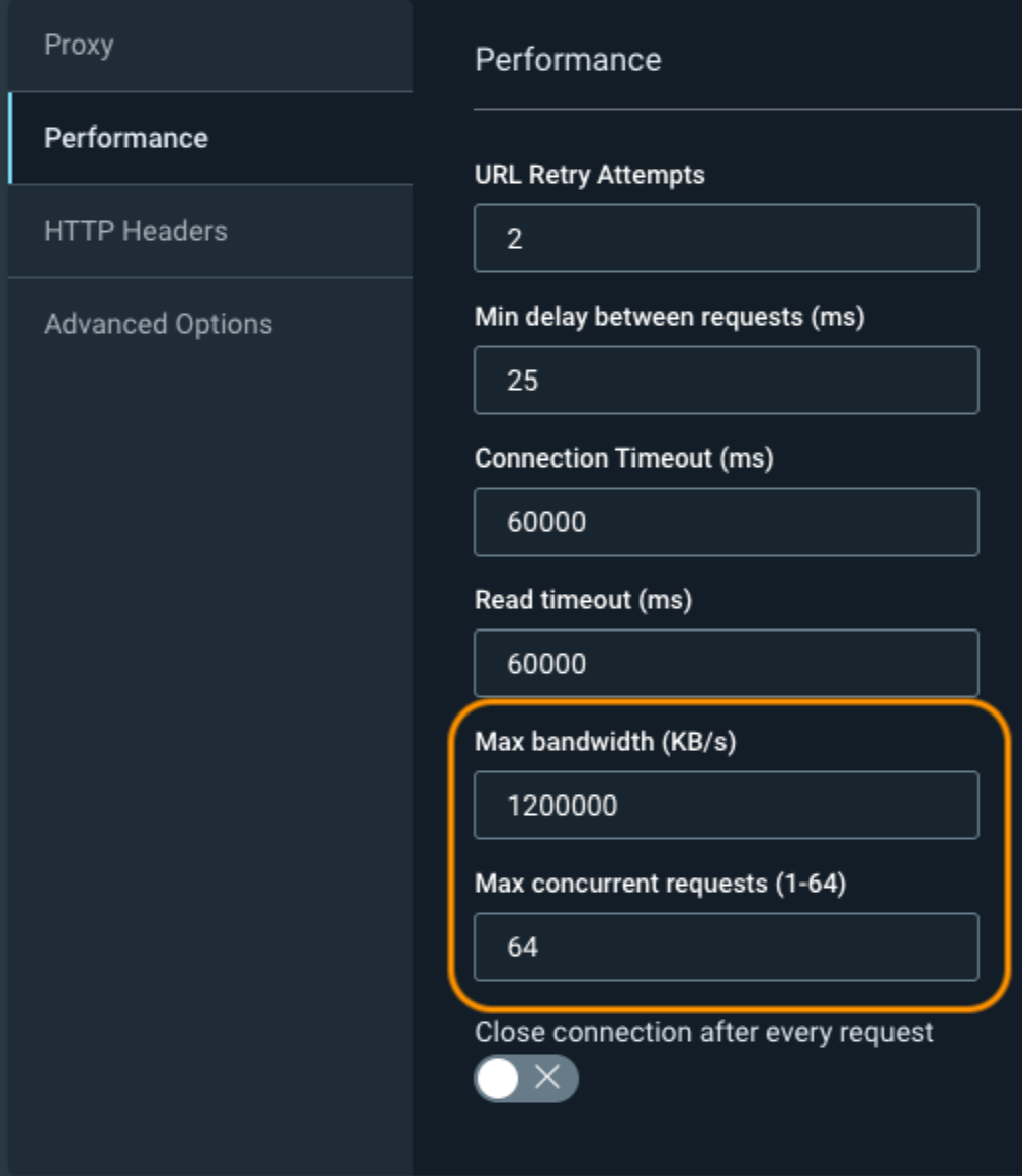 Optionally, you can adjust the URL Retry Attempts and the Min Delay Between Requests, but these have a much higher likelihood to cause problems for your web application or cause you to miss certain pages. Always work with your app developers to ensure that you don’t accidentally take down your application.
