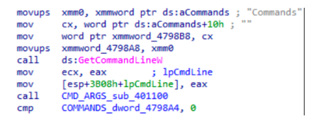 Afterward, the malware checks for various command-line arguments, and its execution flow depends on which arguments are set.