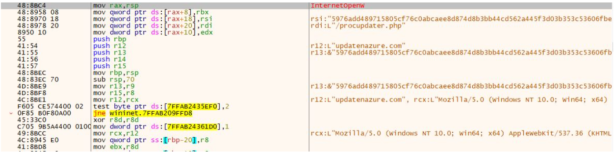 During execution of the BRC4 program, we observed that it reached out to the domain updatenazure[.]com.