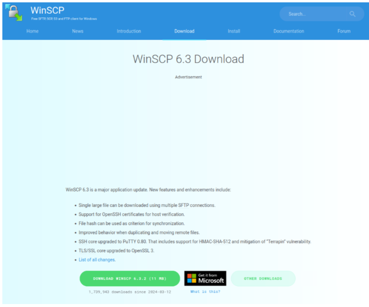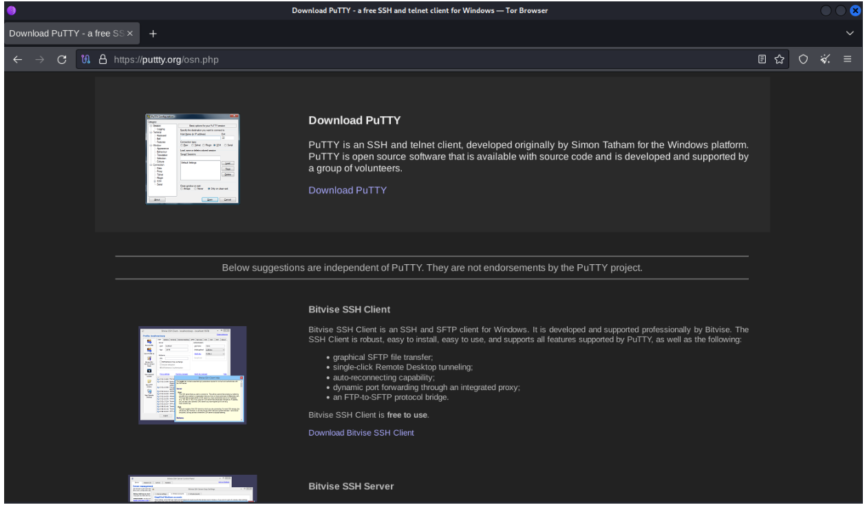 Beginning in early March 2024, Rapid7 observed the distribution of trojanized installers for the open source utilities WinSCP and PuTTy. WinSCP is a file transfer client, PuTTY a secure shell (SSH) client. The infection chain typically begins after a user searches for a phrase such as download winscp or download putty, on a search engine like Microsoft's Bing. The search results include an ad for the software the user clicks on, which ultimately redirects them to either a clone of the legitimate website, in the case of WinSCP, or a simple download page in the case of PuTTY. In both cases, a link to download a zip archive containing the trojan from a secondary domain was embedded on the web page.