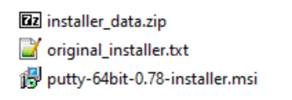 The resource is then decrypted in memory using an AES-256 hex key and initialization vector (IV) that are stored in the data section in plain text. The resulting file is a zip archive which contains three compressed files, including a legitimate MSI installation package for PuTTY and another compressed archive named installer_data.zip.