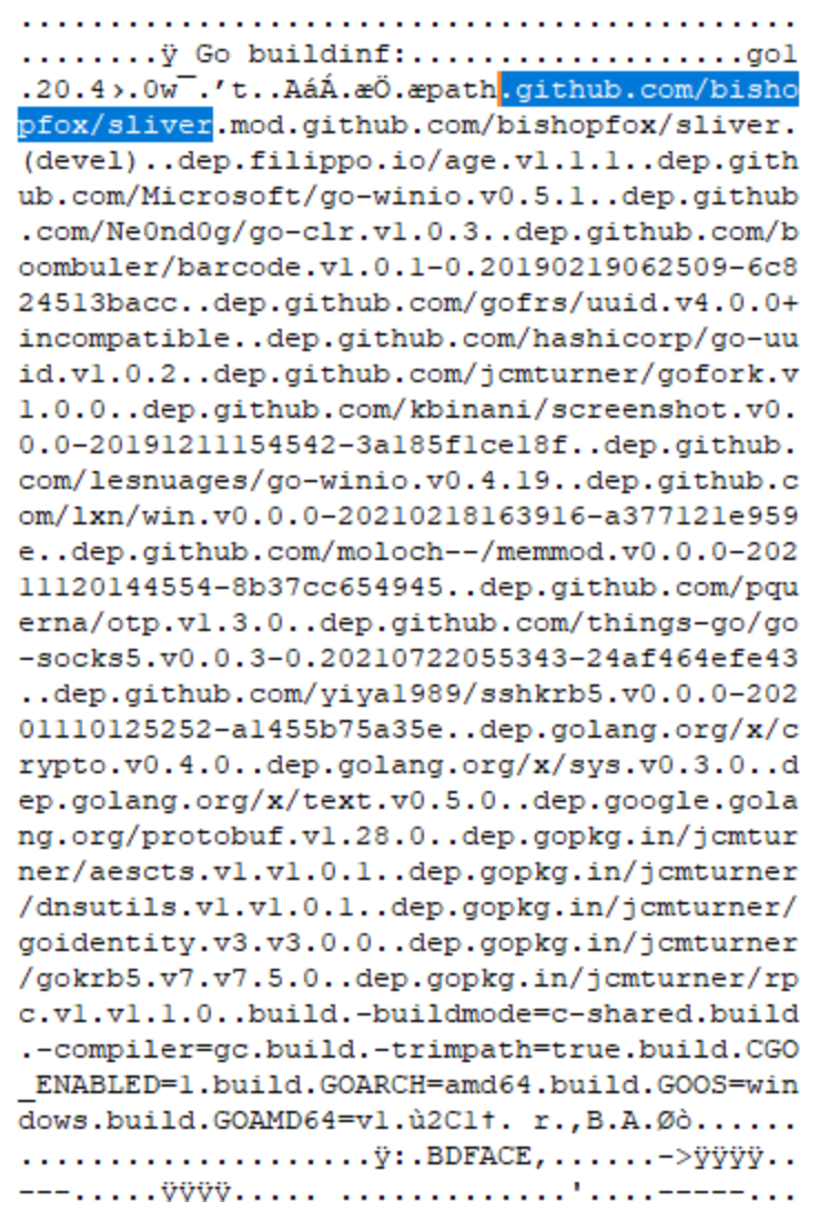 | data.aes | 868CD4974E1F3AC7EF843DA8040536CB04F96A2C5779265A69DF58E87DC03029 | Encrypted Sliver beacon |
