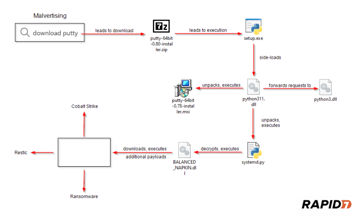 Rapid7 observed impacted users are disproportionately members of information technology (IT) teams who are more likely to download installers for utilities like PuTTY and WinSCP for updates or setup. When the account of an IT member is compromised, the threat actor gains a foothold with elevated privileges which impedes analysis by blending in their actions with that of the administrator(s), stressing the importance of verifying the source of files before download, and their contents before execution.