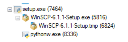 First, the malware executes the unpacked copy of the legitimate WinSCP installer, seen in Figure 3 as WinSCP-6.1.1-Setup.exe. Then, the malicious Python script systemd.py is executed via pythonw.exe after being unpacked into the staging directory %LOCALAPPDATA%\Oracle\ along with numerous Python dependencies. Following the successful execution of both processes, setup.exe then terminates.