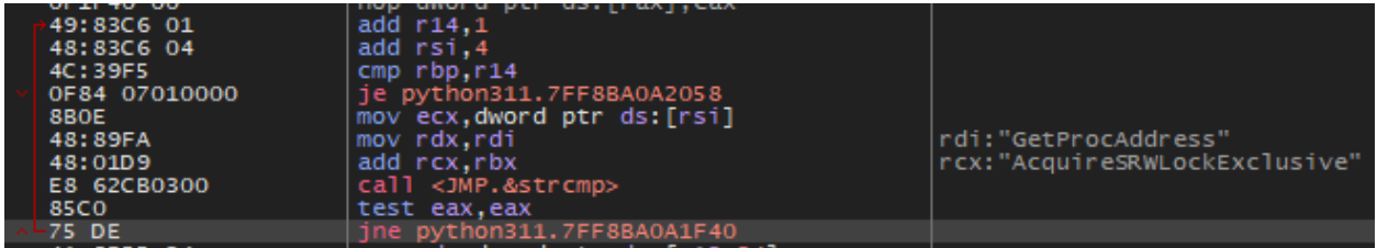 With setup complete, an encrypted resource stored within the resource section of python311.dll is retrieved using common resource WINAPI calls, including FindResourceA, LoadResource, SizeOfResource, and FreeResource.