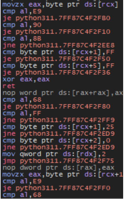 The library ntdll.dll contains functions which make up the Windows Native API (NTAPI), which is generally the closest a process executed in user mode can get to utilizing functionality from the operating system’s kernel. By resolving NTAPI functions for use, malware can bypass detection applied to more commonly used user mode functions (WINAPI) and access lower level functionality that is otherwise unavailable. Several of the NTAPI function pointers resolved by the malware can be used for evasion techniques such as Event Tracing for Windows (ETW) tampering and bypass of the Anti-Malware Scan Interface (AMSI) as has been observed in prior Nitrogen campaign samples. Some of the functions are dynamically resolved from ntdll.dll are found using concatenation of stack strings to form the full name of the target API just before resolution is attempted, likely to help evade detection.