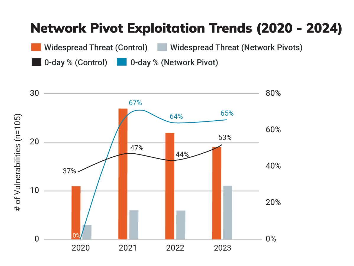 Over the four years Rapid7 has been categorizing this type of vulnerability, network edge devices have comprised 24% of exploited vulnerabilities and a quarter of all widespread threats.