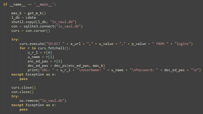 The payloads Apps.zip and Updt.zip both contain executables created using PyInstaller, which means the original Python script used to create the executables can be recovered trivially using a publicly available extractor. The payload dllChrome32.exe, contained within Updt.zip, is used to facilitate theft of credentials from Google Chrome’s database that are then saved into the file %TEMP%\chrm.txt with the format: URL, Username, Password.