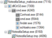 Figure 4. Typical Process Tree for Initial Execution of the Trojanized Installer.