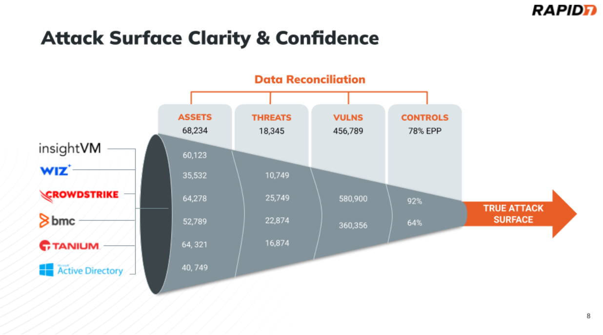 Due to the correlation engine provided by CAASM solutions, the more data you ingest from your tools, the better your attack surface visibility and accuracy. Remember the funnel illustrated at the beginning of this article? Since your tools might not agree on the fundamental aspects like the number of assets, it’s necessary to ingest data across them to get closer to a truer picture of your attack surface.