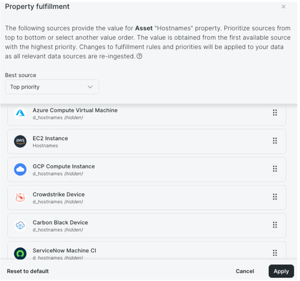 With Surface Command, this is a thing of the past. Each correlated value, such as hostnames, Operating System, Owners, etc. that would normally come from a variety of locations can be individually tuned. Rather than the traditional “last in wins” approach, we have a correlation priority strategy that you get to pick which tool you trust most for that single attribue. This allows for precision when creating your golden record for searching, feeding into your CMDB from a single source now, and also for queries within Surface Command.