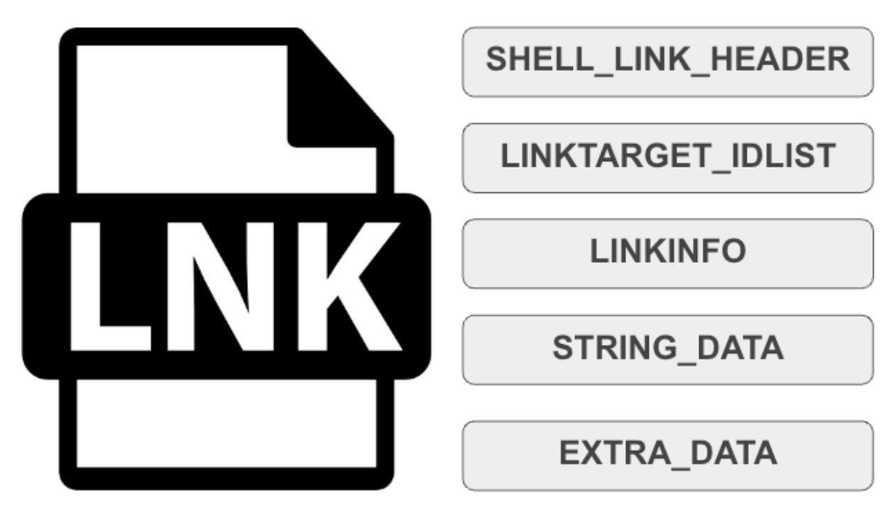 The binary structure of a LNK file is based on Shell Link Binary file format with a header and several optional data structures typically present.