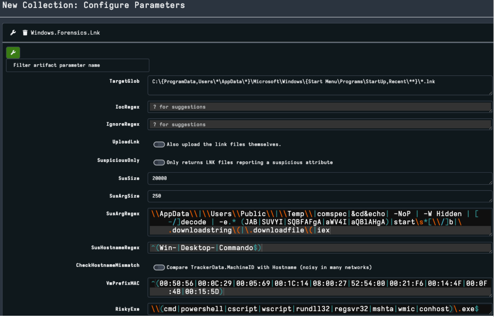 Using Velociraptor, LNK files can be collected directly from endpoints during incident response for user forensics, or targeted threat hunting. LNK files can also be collected from malware repositories like VirusTotal, then processed offline for analysis during research. Depending on the analysis task, we can hunt for specific IOC strings and attributes or build our own processing in a Velociraptor Query Language (VQL) notebook to manipulate the parsed data post-collection.