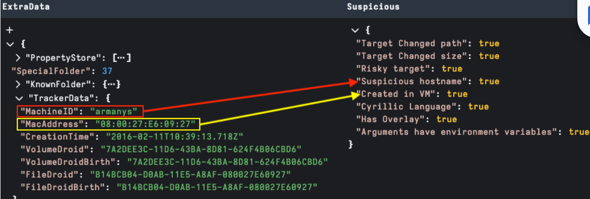 TrackerData is the most well-known source of threat research data. Detecting known hostnames and MAC addresses may assist with tracking LNK sources.