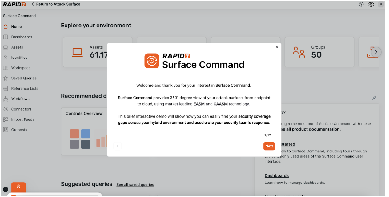 We began this blog with a real-life and anonymized example for a customer and the disparity in their asset count between IT and Security teams. Surface Command addresses this operational challenge. Firstly, Surface Command is platform-agnostic; what’s important to Rapid7 is capturing your actual number of assets using a mixture of external scanning and importing data feeds from over 100 commonly used IT and Security tools (EDR, CNAPP, VM, CMDB, etc.). This provides a true, constantly updated view of all assets across the cloud and on-premises. Assets detailed will include cloud containers, servers, workstations, IoT devices, identities, smartphones and more.
