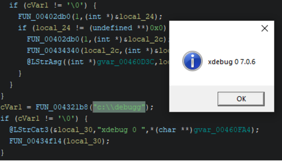Rapid7 has also observed the delivery of DarkGate malware following initial access. One payload archive contained both a DarkGate infection initiation script, test.vbs, and an executable copy of the DarkGate malware itself, SafeFilter.exe (SHA256: EF28A572CDA7319047FBC918D60F71C124A038CD18A02000C7AB413677C5C161 ), though this copy is packed using the group’s custom packer. The final payload containing the DarkGate malware, after several layers of decrypting and loading, contains the version string 7.0.6. If the folder c:\debugg exists on the system when the malware is executed it will display the version number via MessageBoxA. The configuration for this sample can be seen below along with hard coded commands. Notably, the campaign ID for the sample appears to be drk2.