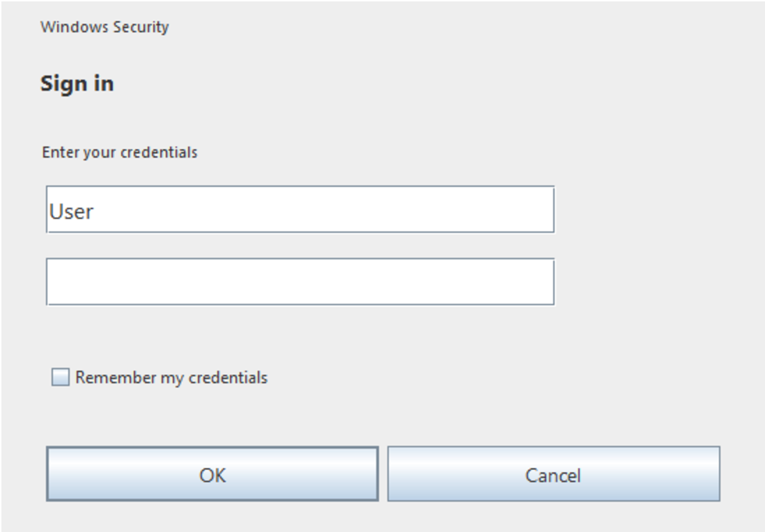 The Java variant of the credential harvester, identity.jar, provides a similar prompt to the user, though when a password is entered it is appended, without the username, to a .txt file with a random 10-letter alphabetic name to the current working directory. The cancel button on the prompt, shown below, is not functional and the prompt is drawn on top of other windows, meaning that it will not close until the user has entered their password correctly.