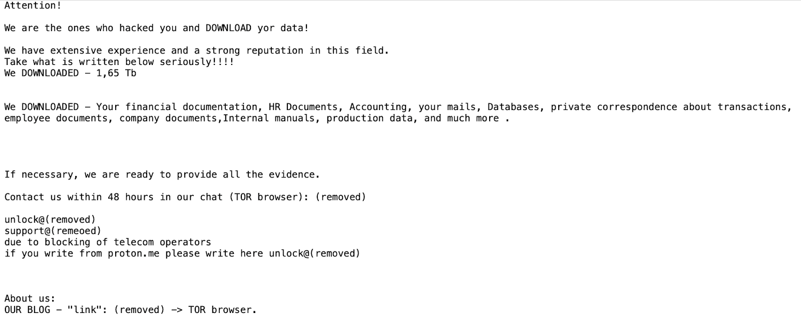 - The deadline to pay a ransom, or just make initial contact with the threat actor, varies greatly between groups. RansomHub has previously handed out ransoms with deadlines ranging between 72 hours and 90 days. Cl0p has been known to apply varying degrees of pressure to encourage targets to get in touch. In December 2024, the group gave uncommunicative victims 48 hours to make contact or risk having their organization’s names disclosed publicly. Other Cl0p notes, such as the one below, reuse the 48-hour tactic but exclude mention of public exposure. Regardless of the tactics used, there’s no guarantee files will be unencrypted or stolen documents deleted from leak sites should the victims pay up. These supposed deadlines create a sense of urgency while potentially offering victims little beyond false hope.