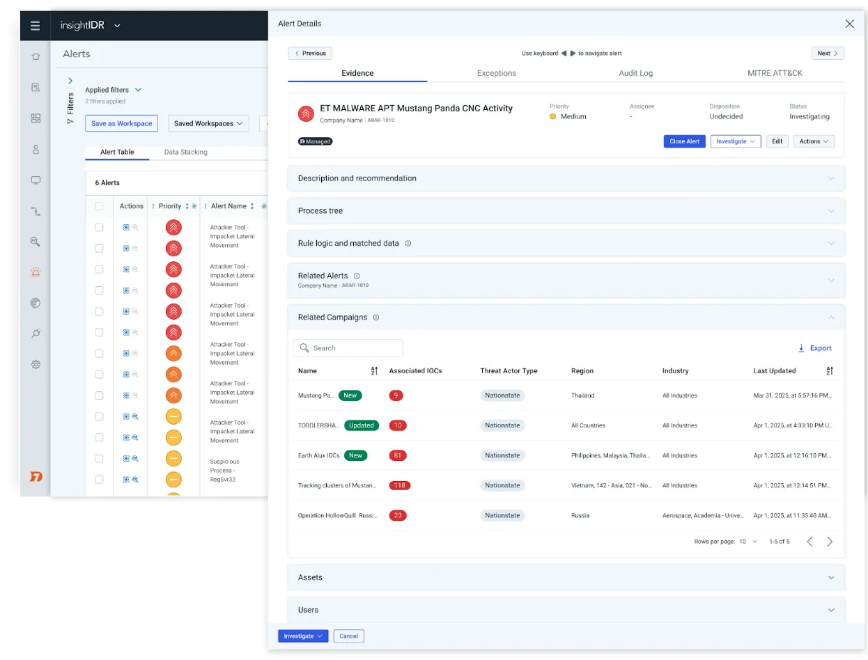 Above all else, the integration of Intelligence Hub with the Rapid7 Command Platform provides the ability to go beyond the analyst and deliver true security outcomes. Firstly, with our next-gen SIEM, Rapid7 InsightIDR, the security analyst can prioritize triaging security alerts that demand attention. For example, if there are reliable indicators regarding the possibility of a ransomware group inside the environment, this clearly demands prioritization with the intention of disrupting the kill chain before the final stage payload is delivered. Such an approach reinforces why context matters, and perhaps controversially, why attribution becomes operationally relevant.