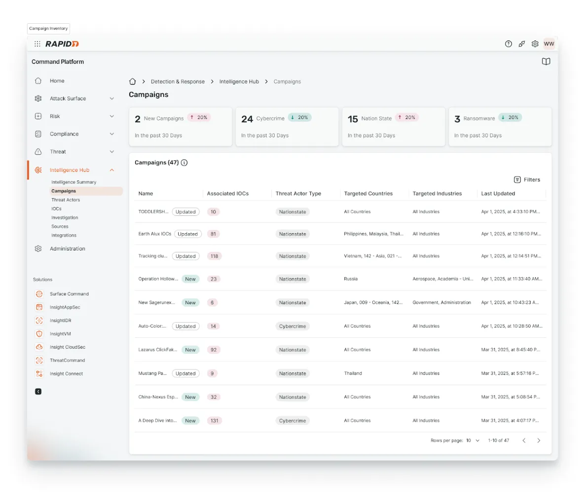 We are delighted to announce the availability of Intelligence Hub, an evolution in threat intelligence delivery that is designed to provide meaningful context and actionable insights integrated with the Rapid7 Command Platform.