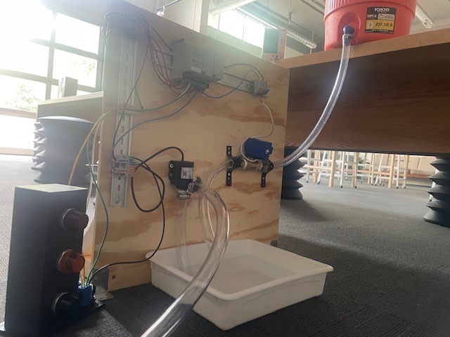 Now we can look at the water systems. For any tubing or components you connect, you will want to ensure that any National Paper Taper (NPT) threads are properly wrapped with Teflon Tape and clamped. If you do not do this, your connectors will leak under pressure. While the designed system here separates wires from water systems well, water near live wires would substantially increase risk and should be minimized. Always try to separate your electrical systems from any other components where possible to minimize risk of unintended interactions.