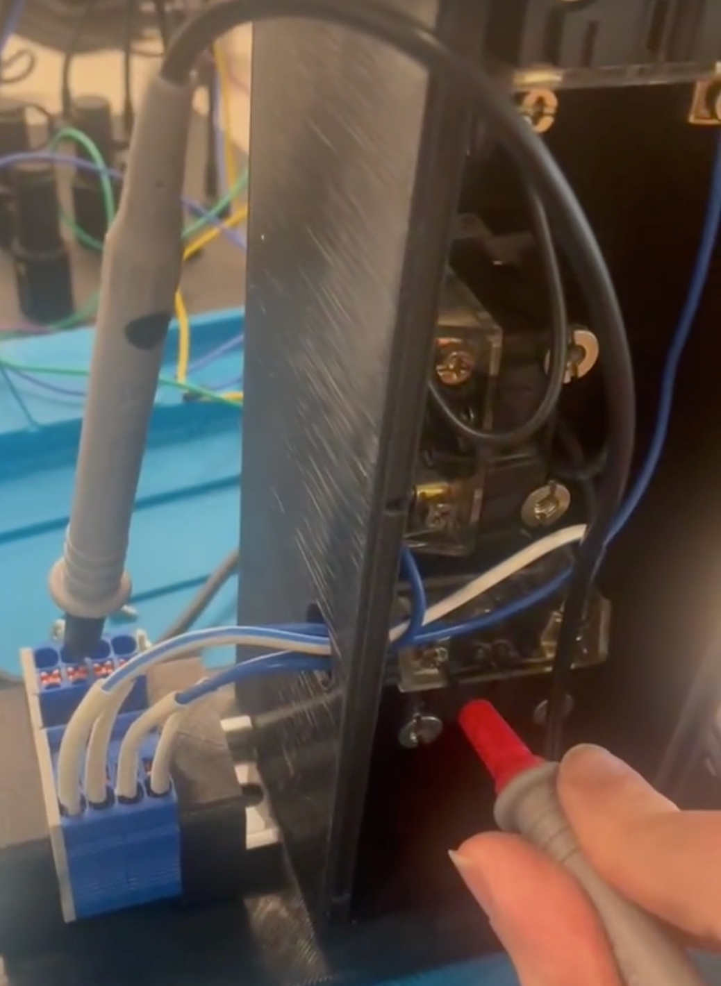 Next we want to make sure that we can identify A: where the wires connect in the terminal blocks, and B: that the circuits are all complete and there are no unexpected breaks. To this end we will use a multimeter and perform continuity checks from the input side of the terminal blocks to the end of each light.