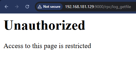 An example is depicted below, calling the log_getfile web API endpoint with the typical /rpc prefix without authenticating.