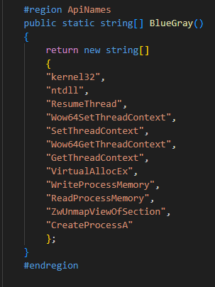Figure 4: APIs used for the hollowing of the MSBuild.exe