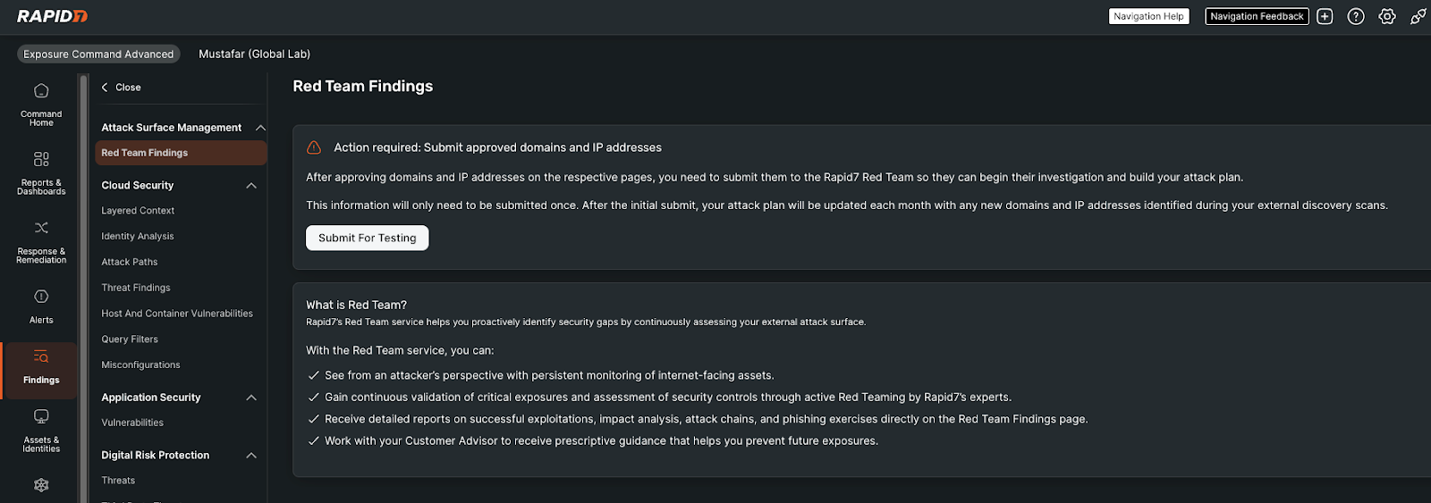 Figure 1: Red Team Findings within Rapid7’s Command Platform