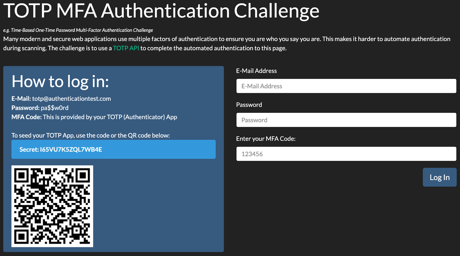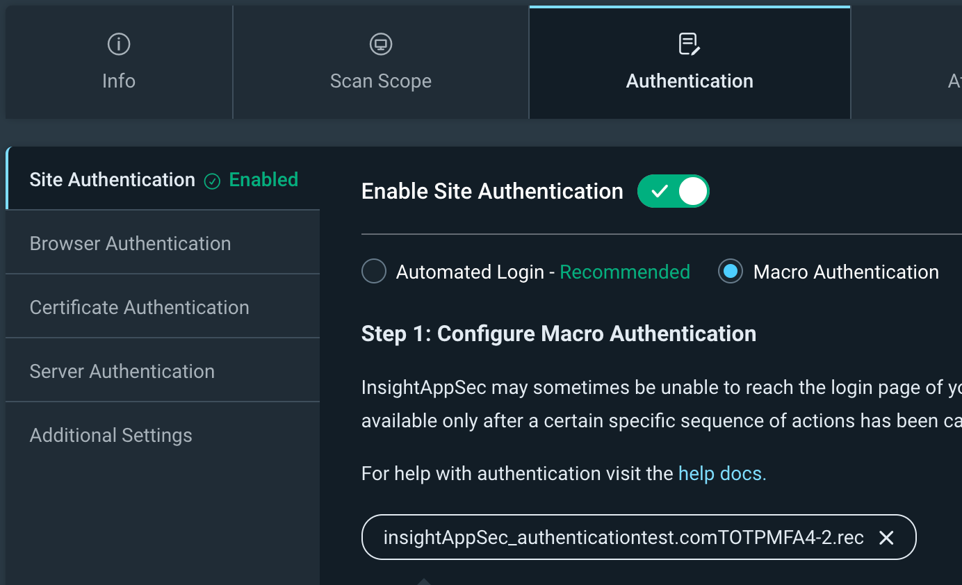 This guide will walk you through the entire process of configuring an InsightAppSec scan to bypass TOTP MFA, using the challenge site authenticationtest.com as our example.