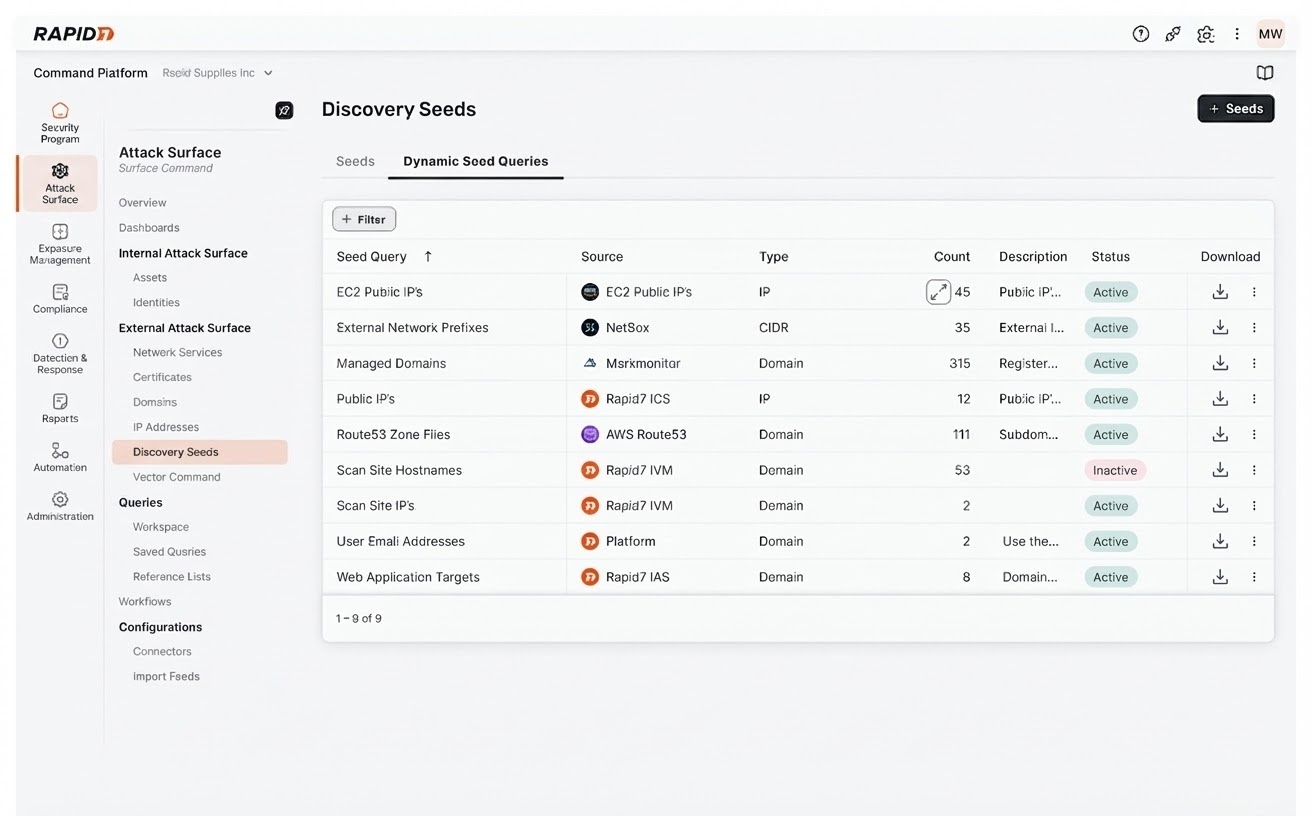Figure 1: Dynamic Seeds feature in the Rapid7 Command Platform